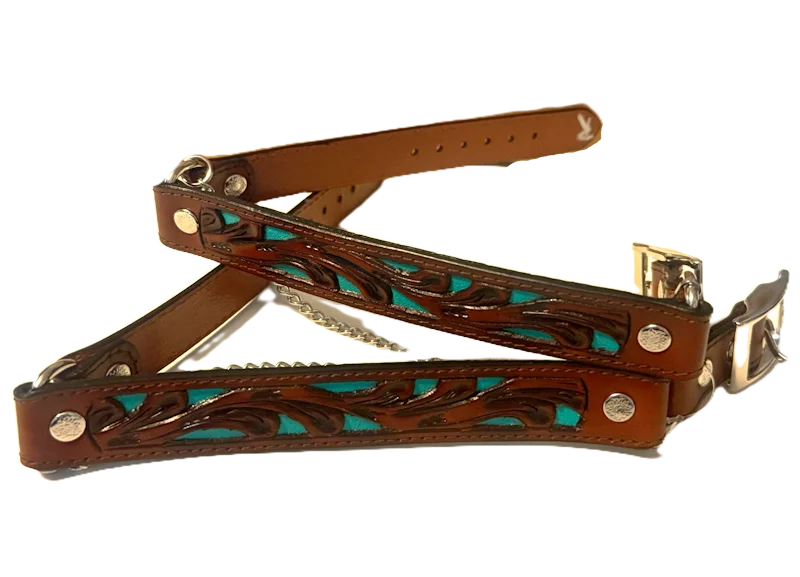 Brown & Turquoise Tooled Leather Cowboy boot chains – USA