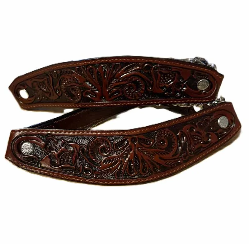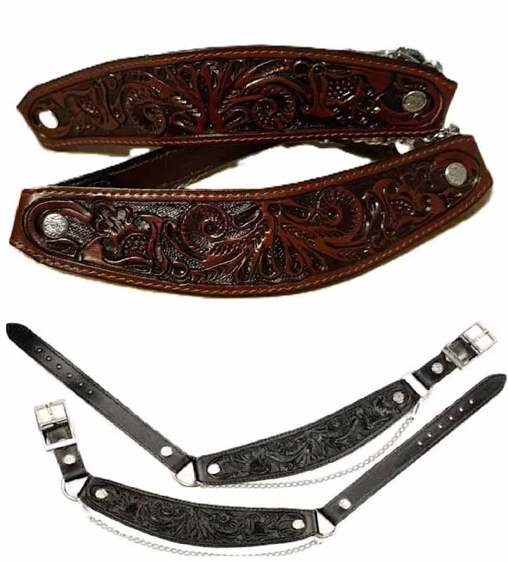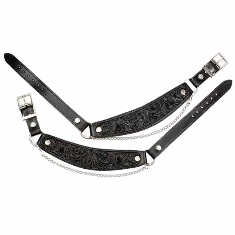 Brown or Black Carved Leather Cowboy Boot Chains -USA