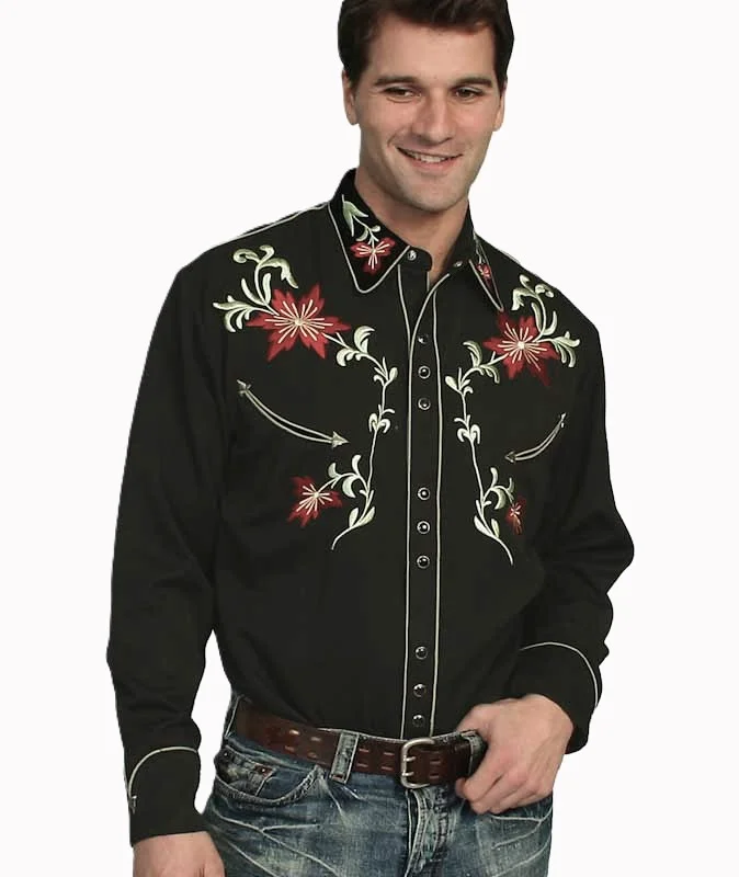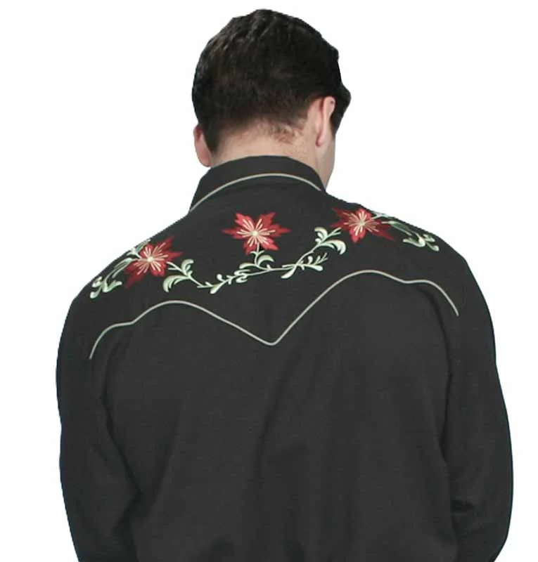 “Desert Blooms” Scully Men’s Black Western Embroidered Cowboy Shirt with Retro Pearl Snaps and Vintage Smiley pockets a great Men’s Cowboy Shirt.