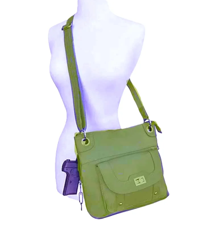 Green Leather Concealed Carry Crossbody Handbag – with Holster