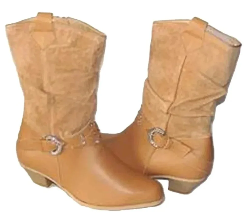 Kids 2 Tan slouch rhinestone Suede cowboy boots