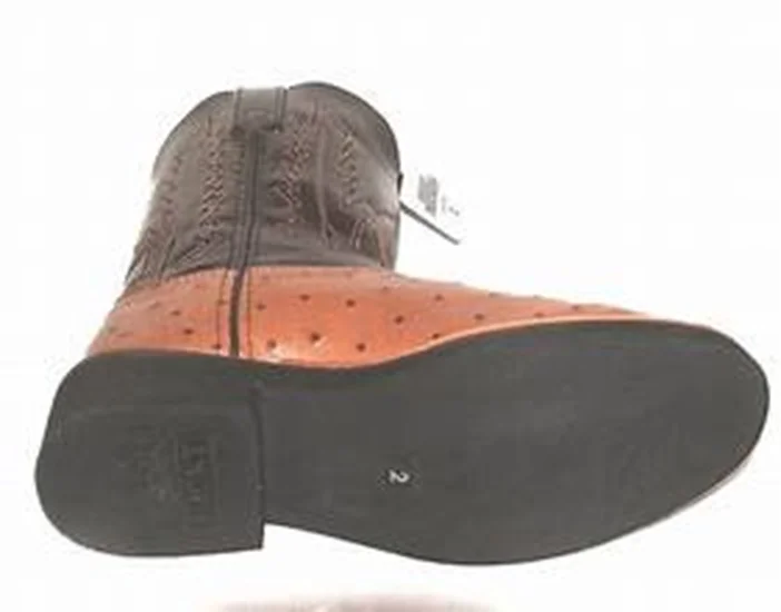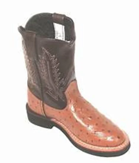 SIZE 13 KIDS Cognac colored Ostrich print leather Crepe cowboy boots
