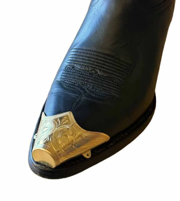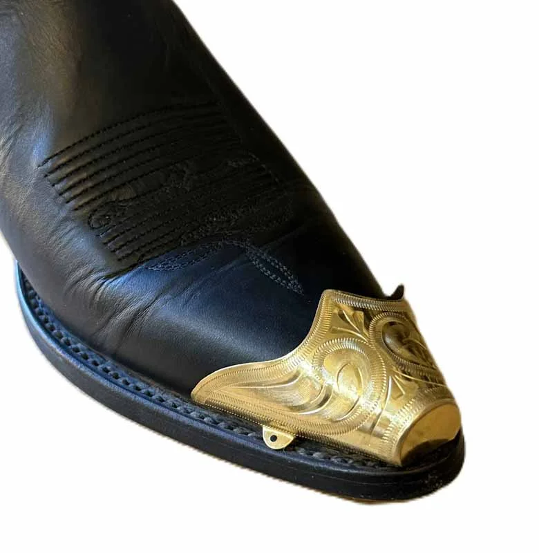 LARGE Toe Full Coverage Gold Cowboy Boot Tips with laser etching detailed design that protects from normal wear with gold plated toe rands.