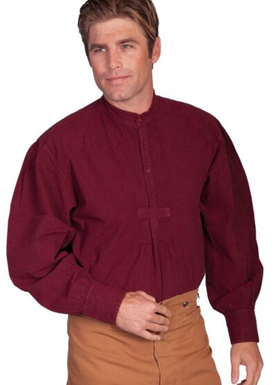 Mens Scully Classic 19th century Burgundy banded collar shirt