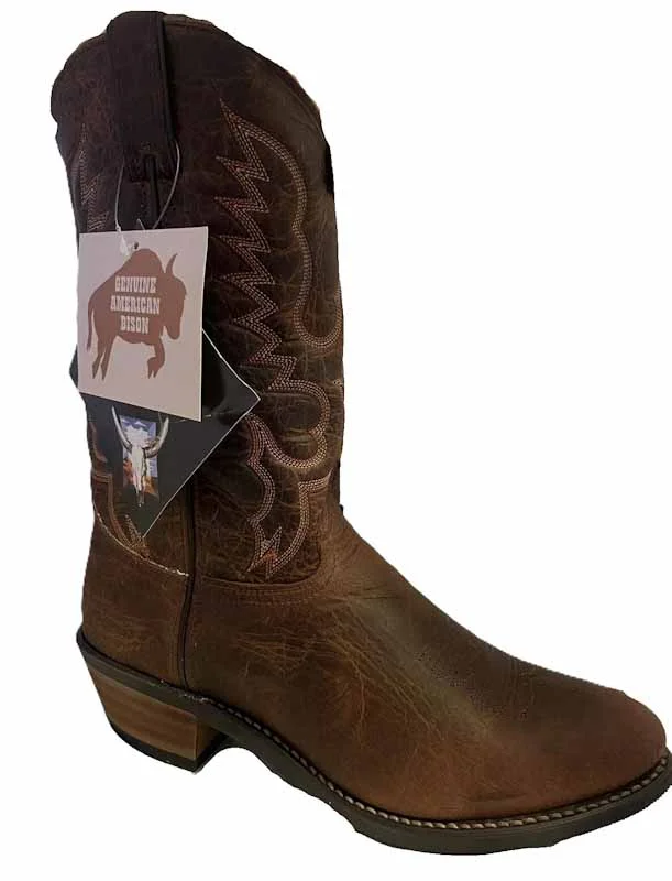Mens USA Made American Bison Leather Brown Cowboy boots