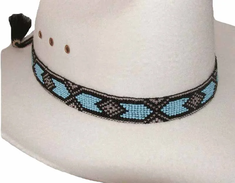 USA Made Navajo Blue Beaded Horse Hair Tassel Hat Band with horse hair tassel end closure for easy snug fitting