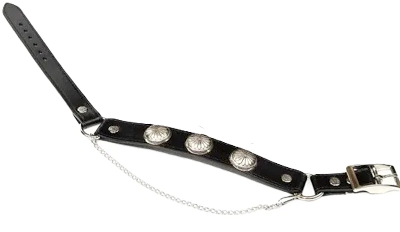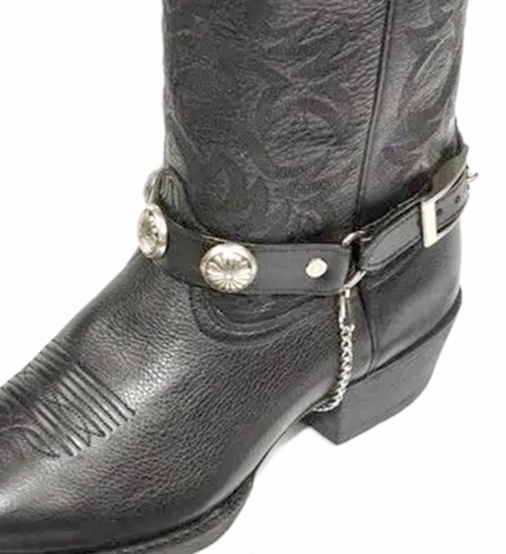 PAIR- Black Leather silver concho Cowboy boot chain hand crafted in the USA with cowhide leather and adjustable chains