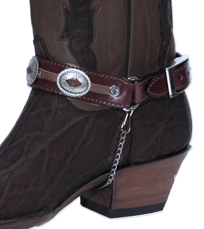 USA MADE BROWN Leather silver mesa concho Cowboy boot chain -USA MADE