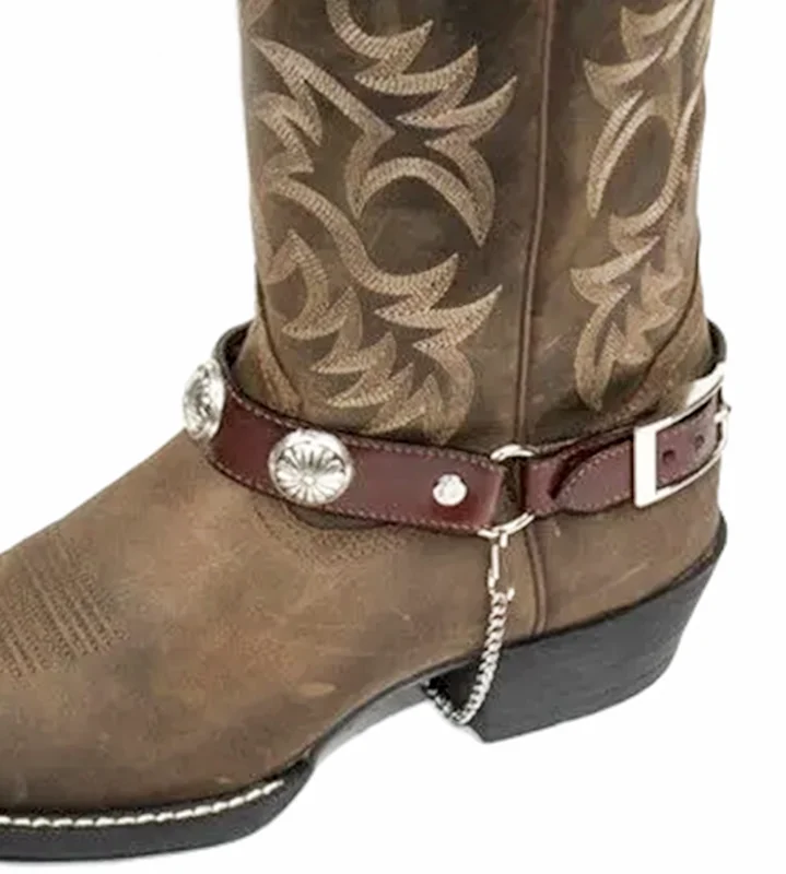PAIR- Brown Leather Silver Starburst Cowboy Boot Chains – USA