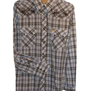 Men’s Embroidered Sawtooth Pocket Blue Plaid Western Shirt