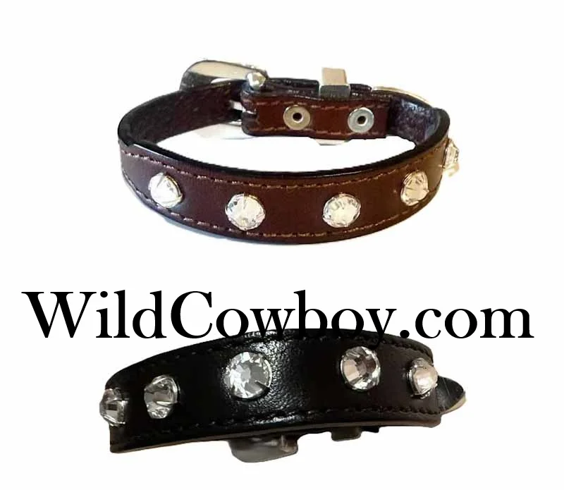 Rhinestone Crystal Western Leather Bracelet USA made bling clear crystals set in either black or brown leather cowgirl bling leather bracelet