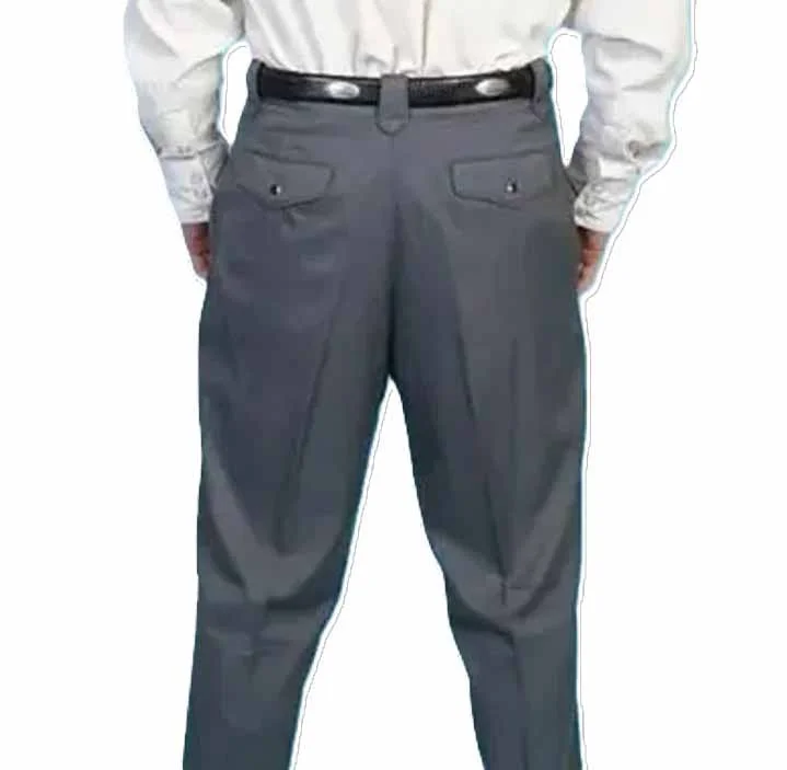 Men’s Charcoal Grey Retro Piped Western Dress Pants with Smiley Pockets made of Polyester and Rayon