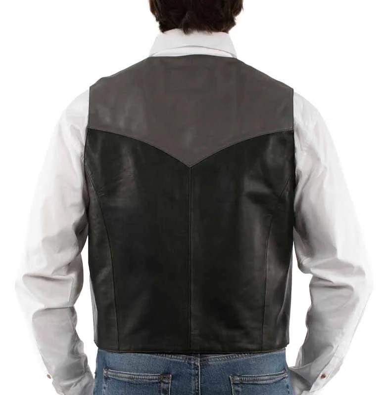 Scully Men’s Lambskin Western Vest Black w/Gray top yoke, Snap Front Classic Western Vest with star embossed silver snaps a vintage cowboy look