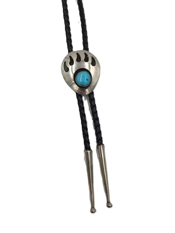 Bear Claw Turquoise Stone Bolo Tie with black leatherette sting tie and raised silver claws to add flare to any western outfit