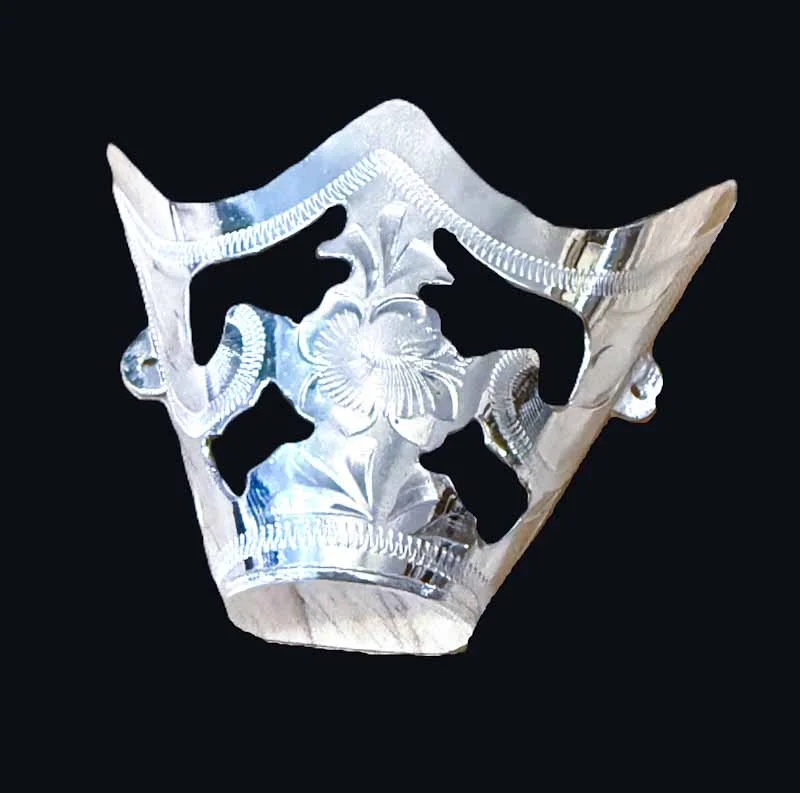Silver Filigree Cut-Out Snip Toe Cowboy Boot Tips. This is shaped like a barrel, where it is smaller at the bottom, and wider in the center. Please read the size info.