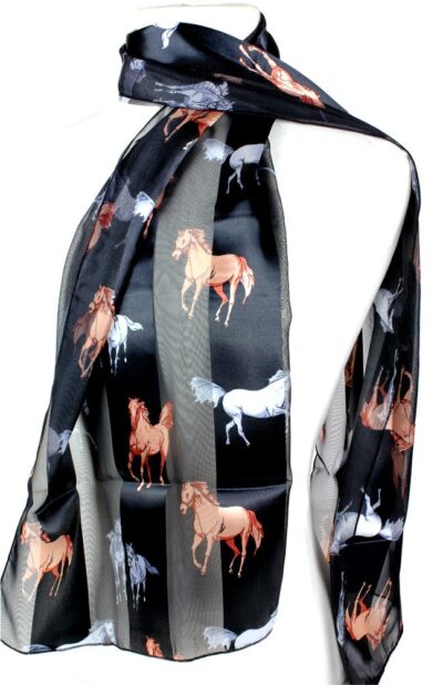 Tone on Tone Black Multi Horse Silk Scarf