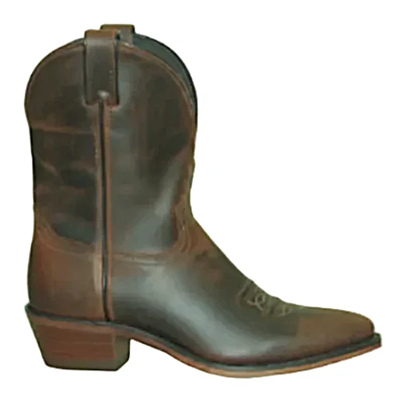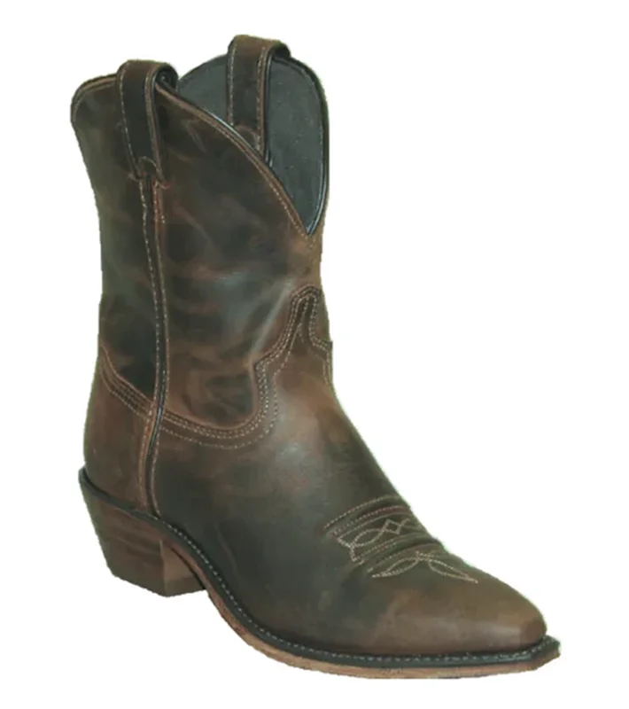 USA Made Women’s Distressed Brown Leather Short Shaft Cowboy Boots with a 7″ Shaft and leather sole on a 1-1/4″ Western heel