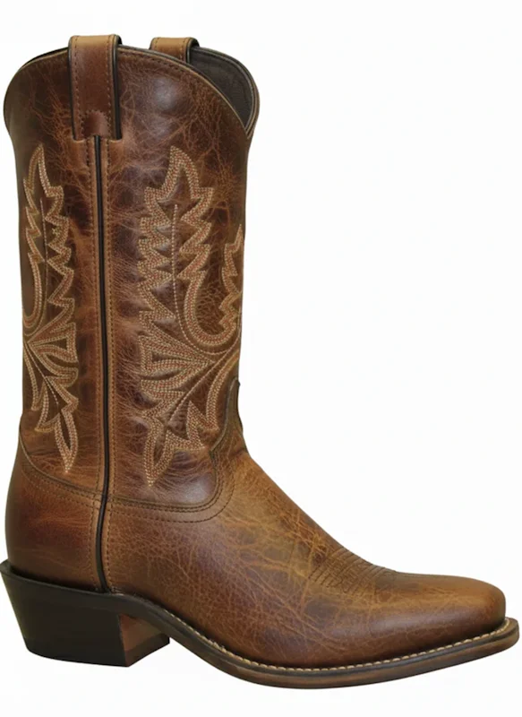 USA MADE Women’s Polished Brown Cowhide leather cowboy boots with a square wagon toe on a 1-1/4″ heel, an 11″ shaft with a medium square toe for everyday wear