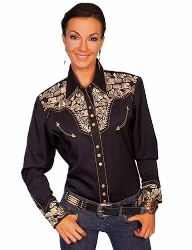 Women’s Bronze Embroidered Black Western Shirt Pearl Snaps