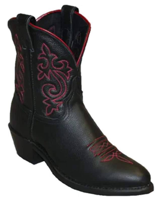 Women’s Soft Black Leather Short Shaft Cowboy Boots -USA